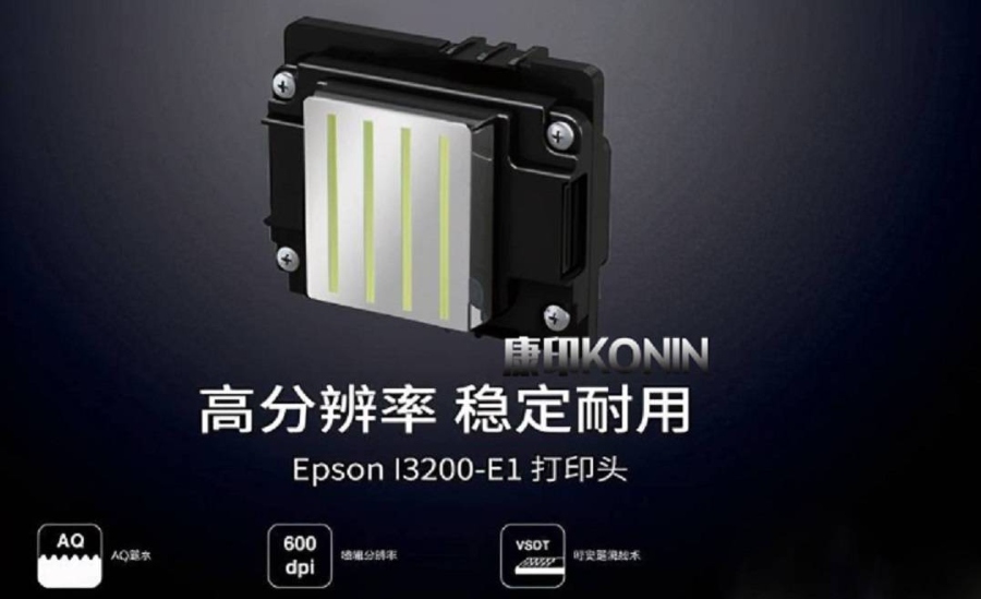 愛普生I3200噴頭,是一款耐腐蝕噴頭,適用于水性、涂料、弱溶劑、UV及熱升華墨水,具有良好的兼容性。該噴頭有4對8排噴嘴,單排400孔,共有3200個噴孔。打印精度達到2400dpi,支持可變墨滴技術(shù),可實現(xiàn)多灰度打印。其高品質(zhì)輸出可使畫質(zhì)飽和度色彩艷麗,打印效果大幅度提升,這也是康印白墨燙畫打印機選擇愛普生噴頭的主要原因。
